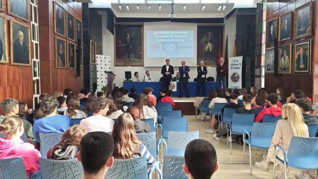 La importancia de la cooperación internacional y el rol de los jóvenes en el desarrollo global fue el eje central del taller de la ‘Red de educación para el desarrollo sostenible y la ciudadanía mundial’, celebrado hoy en el IES Alfonso X El Sabio, en el que participó el director general de Acción Exterior y Cooperación, Juanjo Almela, junto con el vicerrector de Responsabilidad Civil y Transparencia de la Universidad de Murcia, Longinos Marín.