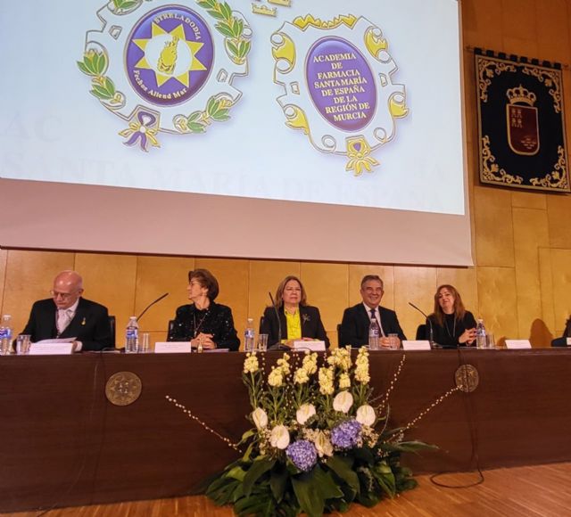 El consejero de Medio Ambiente, Universidades, Investigación y Mar Menor, Juan María Vázquez, participó esta tarde en el acto solemne de inicio de actividades 2024 de la Academia de Farmacia Santa María de España de la Región de Murcia, junto con la presidenta de la Academia, Stella Moreno, y la presidenta de la Asamblea Regional, Visitación Martínez.