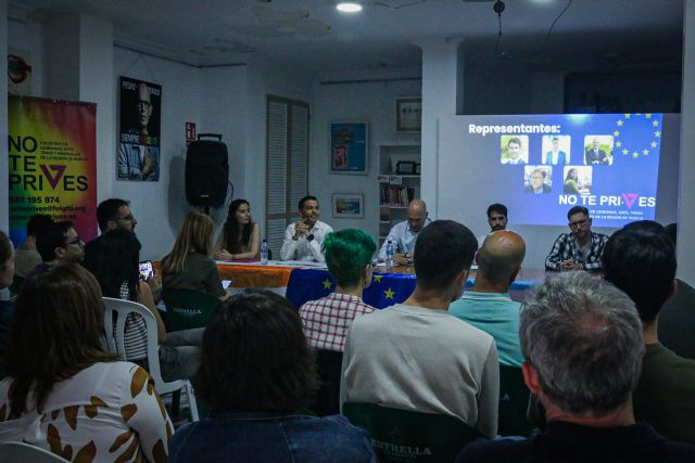 El colectivo LGTBI+ de la Región de Murcia, No Te Prives, celebró ayer en su sede un debate político con miembros LGTBI+ de primer nivel de los principales partidos en la Región de Murcia. La sede del colectivo se llenó para escuchar las propuestas y posturas de los partidos y sus familias europeas en los próximos comicios europeos que se celebrarán el 9 de junio, Día - a su vez- de la Región de Murcia.