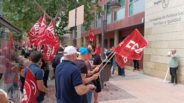 Esta mañana, convocados por las organizaciones sindicatos UGT, CCOO y la Plataforma de las trabajadoras y trabajadores del sector, nos hemos concentrado a las puertas de la Consejería de Política Social, Familias e Igualdad, para exigir unos salarios dignos, el cumplimiento del IV Convenio y el pago de complementos.