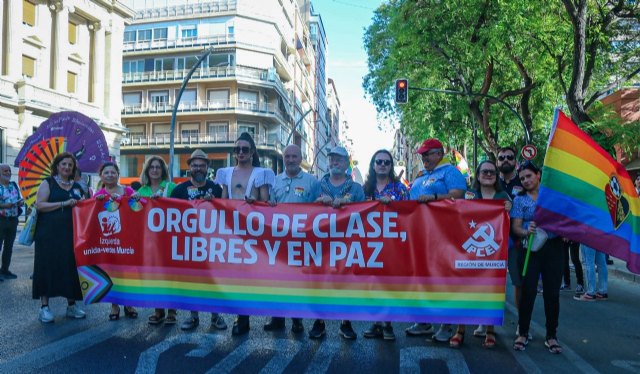 Entre las asistentes portando la pancarta, el responsable de la Red autonómica de ALEAS y también coordinador municipal de IU-Verdes en Murcia, quien ha destacado que "un año más participamos en la Manifestación del Orgullo LGTBIAQ+ para plantar cara al fascismo que no sólo pretende invisibilizarnos sino además niega nuestros derechos".