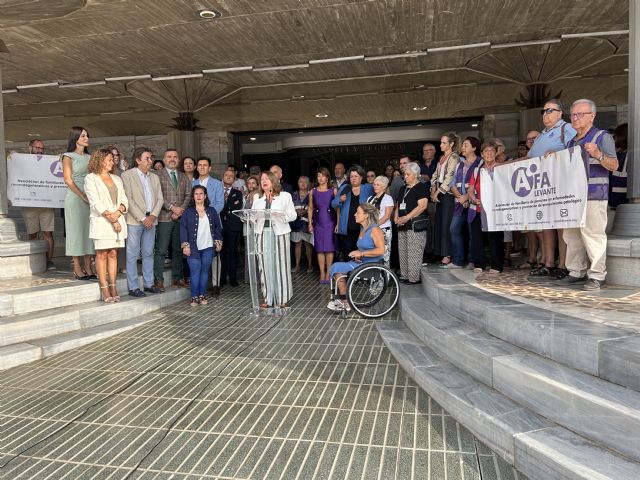 Con motivo del Día Mundial del Alzheimer (21 de septiembre), la Asamblea Regional de Murcia ha mostrado su apoyo a todas las personas afectadas por esta patología, así como con sus familias, cuidadores y con quienes, aún sin diagnosticar, también lo sufren. El pasado sábado, la Cámara Legislativa se sumó a la iniciativa de iluminar su fachada de color verde. Y esta mañana, la puerta principal del Parlamento autonómico ha acogido la lectura del Manifiesto de la Federación de Asociaciones de Familiares de Personas con Alzheimer y otras demencias de la Región de Murcia (FFEDARM).