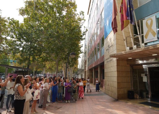 Para dar visibilidad a esta causa, la consejera de Política Social, Conchita Ruiz, y el presidente de la asociación, Francisco Palazón, colgaron un lazo dorado en la fachada del organismo público con el que se representa a los menores y a las familias que, día tras día, continúan luchando contra esta enfermedad.