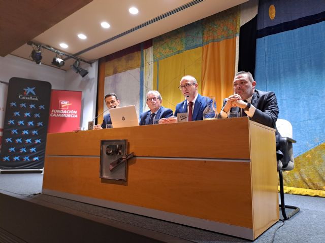 El consejero Víctor Marín participó hoy en la primera charla, junto con el decano del Colegio de Economistas, Ramón Madrid, y el director de CaixaBank en la Región de Murcia, Juan Jesús Lozano, titulada 'Finanzas para ti', que impartió el economista y empresario Francisco J. Fuentes. En esta actividad participan cuatro centros educativos de forma presencial y una veintena online.