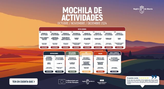 La programación incluye ocho rutas guiadas, una ruta guiada en bicicleta, dos exposiciones, un taller creativo, la celebración del Día sin Compras y cuatro visitas al Centro de Recuperación de Fauna Silvestre (CRFS) El Valle. Las actividades están diseñadas para el público en general y se desarrollarán en los Espacios Naturales Protegidos de la Región de Murcia.