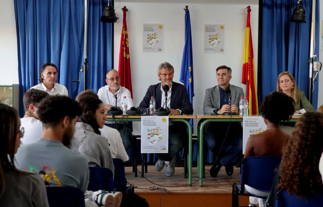 El consejero de Economía, Hacienda, Fondos Europeos y Transformación Digital, Luis Alberto Marín, participó hoy en una charla-coloquio con 40 escolares del Instituto de Educación Secundaria Manuel Tárraga del municipio de San Pedro del Pinatar que se enmarca en estas celebraciones.