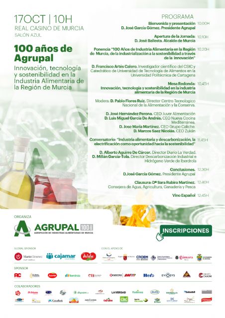 El alcalde de Murcia, José Ballesta, abrirá este foro organizado por la Agrupación de Industrias Alimentarias de Murcia, Alicante y Albacete (Agrupal) y que reúne los principales CEOs de algunas de las compañías más importantes de España como José Hernández Perona, Juver Alimentación; Luis Miguel García De Andrés, Nueva Cocina Mediterránea; Marcos Sáez Nicolás,Zukán; y Jose María Martínez, Grupo Caliche.