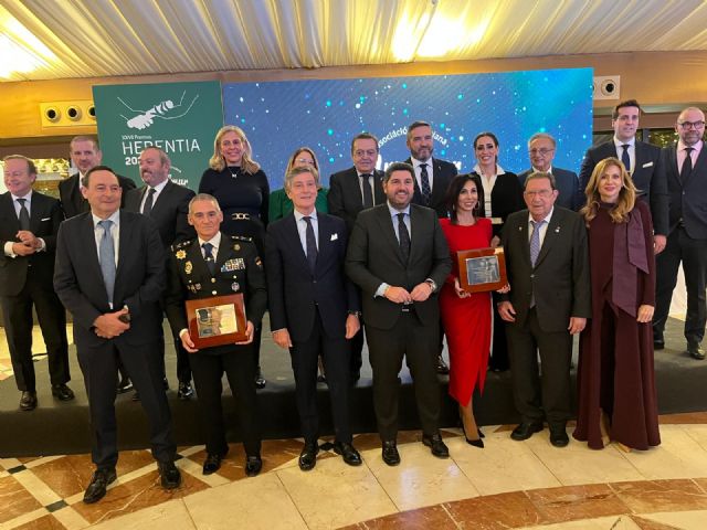 Las menciones de honor se han otorgado a la Policía Nacional en su 200 aniversario, representada por su comisario jefe, Ignacio del Olmo; a la Cámara de Comercio de Murcia, por su 125 aniversario, con su presidenta, Miriam Fuertes, como portavoz; y a José María Albarracín, en reconocimiento a su labor como fundador y expresidente tanto de AMEFMUR como de CROEM.