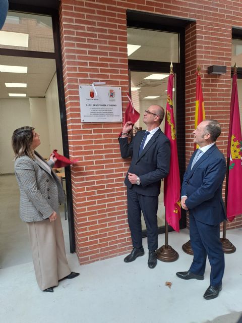 El consejero de Educación y Formación Profesional, Víctor Marín, junto con la alcaldesa de Cartagena, Noelia Arroyo, y el director del centro, Antonio García, inauguraron hoy las nuevas instalaciones. Las obras han consistido en la ampliación, reforma y mejora de accesibilidad del CIFP de Hostelería y Turismo de Cartagena, con una inversión de 497.000 euros. Se ha ampliado una superficie de 460 metros cuadrados.