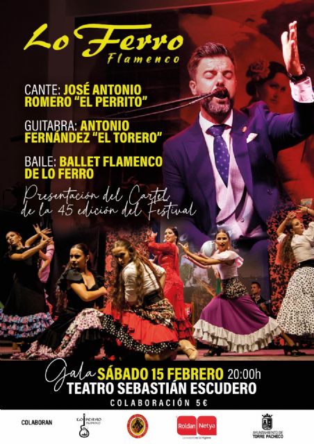 El cante y el toque tendrán el acompañamiento del Ballet Flamenco de Lo Ferro quien pondrá la pasión, la luz y la plasticidad a una noche en la que conoceremos la obra que representará a la 45ª edición del Festival Internacional de Cante Flamenco de Lo Ferro por todo el mundo y que se celebrará del 21 al 27 del próximo mes de julio.