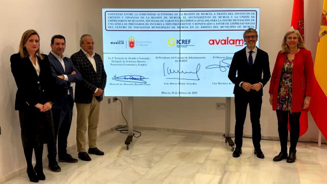 El consejero de Economía, Hacienda, Fondos Europeos y Transformación Digital, Luis Alberto Marín, la concejal de Gobierno Abierto, Promoción Económica y Empleo del ayuntamiento de Murcia, Mercedes Bernabé, y el director general de Avalam, Luis Martínez de Salas, firmaron hoy el acuerdo para poner en marcha esta herramienta, dotada en un primer momento con 750.000 euros, que se podría extender en breve a otros municipios.