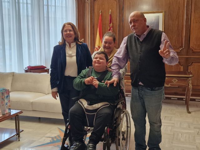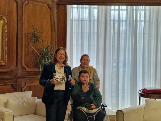 La presidenta de la Asamblea Regional, Visitación Martínez, ha recibido esta mañana al pequeño Julián Cayetano Costa Clemente. Un niño de ocho años, paciente oncológico, que, tras superar un tumor cerebral, continúa en tratamiento por los graves efectos producidos por esta enfermedad.