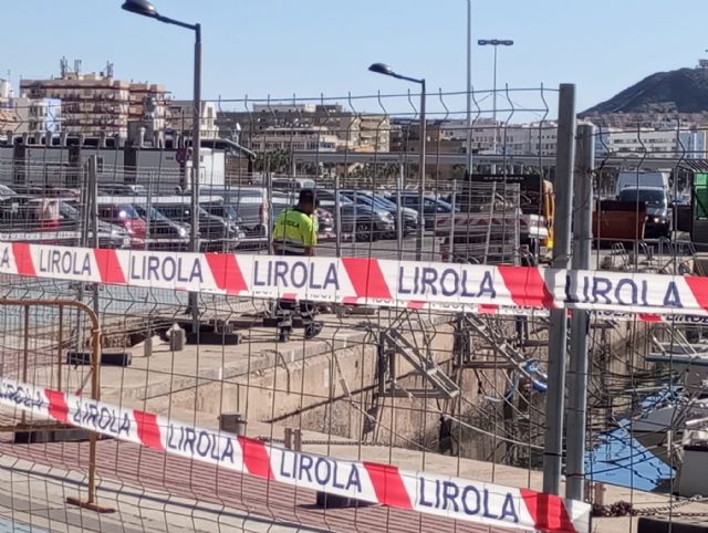 La Consejería de Fomento e Infraestructuras inicia la reparación de los desperfectos ocasionados por el temporal de marzo, en el muelle de la dársena deportiva del puerto pesquero de Águilas. La obra supondrá una inversión regional de 32.000 euros.