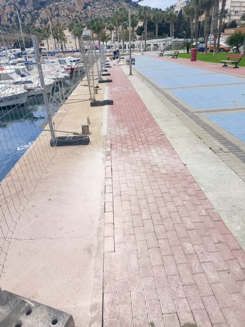 La Consejería de Fomento e Infraestructuras finaliza hoy la reparación de los desperfectos ocasionados, debido al temporal del pasado mes de marzo, en el muelle de la dársena deportiva del puerto pesquero de Águilas.