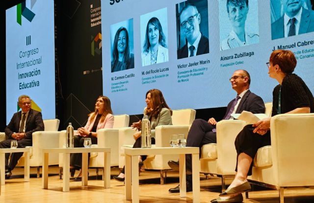 La Estrategia de Digitalización Educativa 'Libre' de la Región de Murcia se presentó hoy en el III Congreso Internacional de Innovación Educativa de Andalucía, organizado en Granada por la Junta, donde participó el consejero de Educación y Formación Profesional, Víctor Marín, en la mesa redonda 'Retos de siempre, soluciones nuevas', junto a sus homólogos de Andalucía, Castilla y León y Canarias.