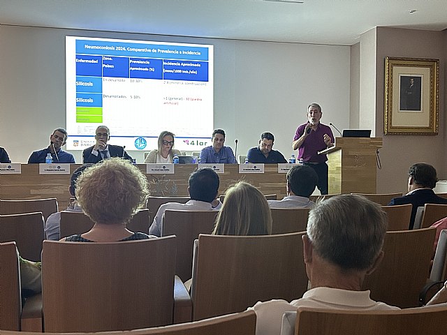 Este jueves 29 de mayo, el Colegio de Médicos de Murcia ha sido el escenario de la Jornada Internacional de la Neumoconiosis, un evento de gran relevancia médica que ha reunido entre su público a medio centenar de personas, en su mayoría profesionales del ámbito sanitario y de la prevención laboral.