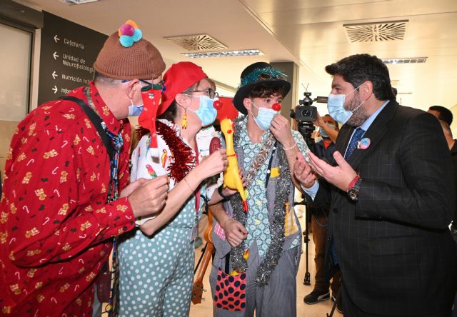 El presidente del Gobierno regional, Fernando López Miras, participó hoy en la tradicional fiesta de Navidad organizada para los niños que están ingresados en el Hospital Materno-Infantil Virgen de la Arrixaca de Murcia, en lo que calificó como "una de las jornadas más emotivas del año". López Miras y los payasos de hospital de la Asociación Pupaclown, junto con los profesionales y docentes de las Aulas Hospitalarias, acompañaron a los menores en las actividades que dan comienzo a la celebración de las fechas navideñas.