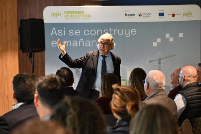 Murcia, 23 de enero de 2026 Optimismo, redefinición del éxito y cómo afrontar el cambio han centrado la sesión protagonizada por el famoso consultor y conferenciante Emilio Duró en la tercera jornada del ciclo Building Revolution. Más de 100 empresarios y profesionales de la construcción han participado en este encuentro de innovación, colgando de nuevo el cartel de aforo completo en esta iniciativa organizada por el Gobierno regional a través del Instituto de Fomento de la Región de Murcia (INFO), en colaboración con la Federación Regional de Empresarios de la Construcción de Murcia (FRECOM) y el Centro Tecnológico de la Construcción de la Región de Murcia (CTCON), que tuvo lugar en el Ágora del edificio corporativo de Caixabank en Murcia.