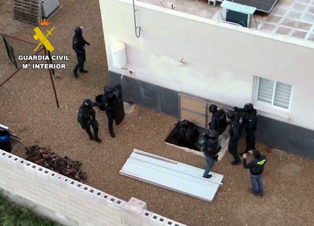 La Guardia Civil de la Región de Murcia, en el marco de los servicios establecidos para prevenir y perseguir el tráfico de drogas, ha desarrollado en la pedanía murciana de Sangonera la Seca la operación 'Sanceco', en la que se ha desmantelado un invernadero tipo indoor instalado en un zulo bajo una vivienda y destinado al cultivo masivo de marihuana y su posterior manipulación.