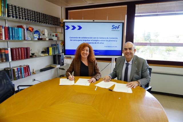 La Consejería de Empresa, Empleo y Economía Social, a través del Servicio Regional de Empleo y Formación (SEF), y la Cámara de Comercio de Lorca mejorarán las oportunidades de empleo y el emprendimiento entre los jóvenes y los mayores de 45 años.