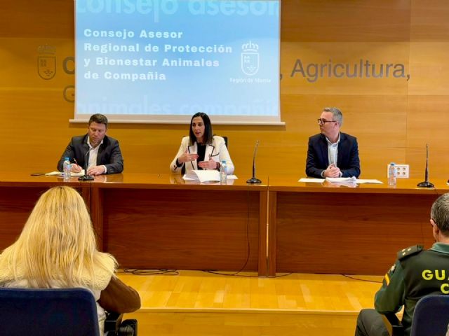 Así lo trasladó la consejera de Agua, Agricultura, Ganadería y Pesca, Sara Rubira, durante la reunión del Consejo Asesor Regional de Protección y Bienestar de Animales de Compañía, en la que participaron personal de la Administración regional, representantes del Colegio Oficial de Veterinarios, las universidades de Murcia (UMU) y Católica San Antonio (UCAM), asociaciones de protección animal, la Federación de Municipios de la Región de Murcia y responsables de distintas entidades locales, así como de la Guardia Civil.