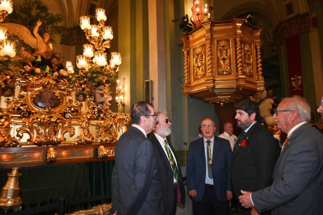Durante la visita, el jefe del Ejecutivo regional comprobó de primera mano los trabajos de colocación de adornos florales, de iluminación y de preparación de los tronos de una de las procesiones más emblemáticas de la Semana Santa cartagenera.
