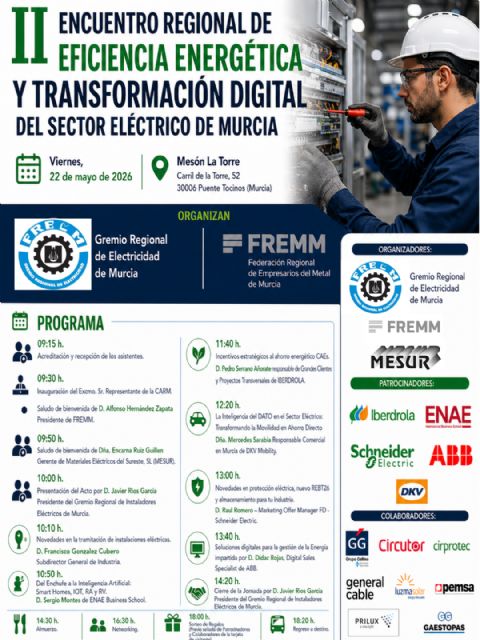 El “II Encuentro de Eficiencia Energética y Transformación Digital del Sector Eléctrico” del Gremio Regional de Instaladores de Electricidad, integrante de la Federación Regional de Empresarios del Metal de Murcia (FREMM), afianzará a los instaladores murcianos en la vanguardia en innovación, ahorro, protección y agilización de trámites.