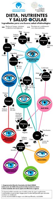 Cataratas, ojo seco, glaucoma, retinopatía diabética, oclusiones vasculares retinianas y degeneración macular asociada a la edad (DMAE) son patologías muy prevalentes y que dependen de factores diversos, señala el Prof. Luis Fernández-Vega Sanz, director médico del IOFV. Uno de ellos es la dieta, que se añade a la herencia genética, la edad, el consumo de tabaco y el estrés oxidativo. Una dieta adecuada y unos hábitos de vida saludables resultan imprescindibles para promover la salud ocular y retrasar el inicio o la progresión de algunas de estas enfermedades.