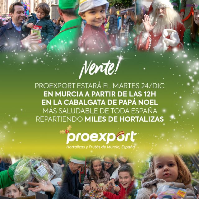 "Nos encontramos en fechas de comer mucho y se nos olvida lo importante que es mantener una dieta equilibrada, en la que primen las frutas y hortalizas. Creemos que acompañar a Papá Noel en este recorrido y repartir producto entre quienes acudan a verle, grandes y pequeños, es una buena manera de recordarles ese mensaje y de invitarles a incluir las mejores verduras de nuestra tierra, las de la mejor calidad, en sus mesas durante todo el año, incluidos estos días tan especiales. Un mensaje que desde Proexport llevamos por bandera", indica el director general de la Asociación, Fernando Gómez.