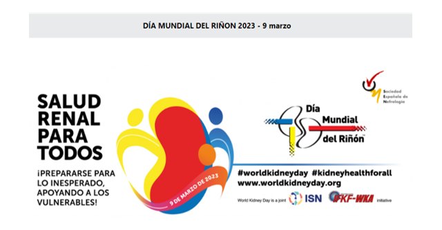 En concreto, el fomento de la donación de vivo como opción segura y eficaz para el trasplante renal, con resultados que son mejores que los del donante fallecido en términos de supervivencia del trasplante y reducción de complicaciones; y la potenciación de los tratamientos domiciliarios, como la diálisis peritoneal o la hemodiálisis domiciliaria, que permiten una mayor autonomía e independencia del paciente al realizarlo en su propia casa, evitando desplazamientos al hospital y facilitando su conciliación laboral y familiar, además de contribuir a la sostenibilidad del sistema sanitario. El Día Mundial del Riñón de este año se celebra bajo el lema “Preparándonos para lo inesperado, apoyando a los vulnerables”, el cual incide en la especial vulnerabilidad de los pacientes con ERC en situaciones de emergencia sanitaria como lo ha sido la pandemia de COVID-19 y, por tanto, en la necesidad de planificar los recursos y medios para la atención de estos pacientes en estos contextos críticos.