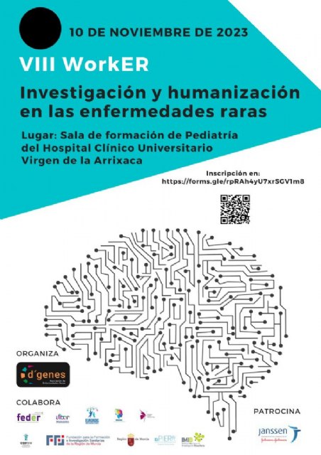 La Asociación de Enfermedades Raras D´Genes ha organizado el próximo 10 de noviembre el VIII WorkER Investigación y humanización en las enfermedades raras. Cuenta con la colaboración del Colegio Oficial de Farmacéuticos de la Región de Murcia (COFRM), la Comunidad Autónoma de la Región de Murcia, el Instituto Murciano de Investigación Biosanitaria (IMIB) y el patrocinio de Janssen.