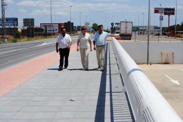 La alcaldesa de San Javier, Pepa García acompañada por los concejales de Servicios y Obras Públicas, Pedro Javier Muñoz, y de Seguridad, Manuel Leal ha visitado la obra, de la que ha destacado " la mejora en seguridad de los peatones que de forma temeraria, utilizaban este paso, sin espacio ni protección, para acceder bien a la zona comercial que se desarrolla en dirección a San Pedro del Pinatar o incluso al polideportivo". García ha recordado que se trataba de una demanda de los usuarios "que ahora pueden hacer uso de este paso con tranquilidad".