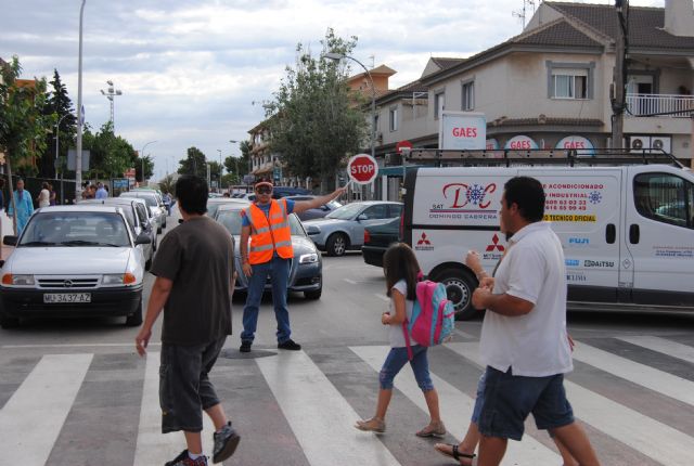 Policía Local y Protección Civil han puesto en marcha un servicio pionero en la región de Murcia de Voluntariado Vial que se ha estrenado esta mañana en los colegios "La Paz" y "Joaquín Carrión Valverde", de San Javier, donde dos vigilantes civiles se han ocupado de garantizar la seguridad de los alumnos a la hora de cruzar la calle para acceder al centro escolar, coincidiendo con la entrada a las 09:00h. y la salida a las 13:00h.