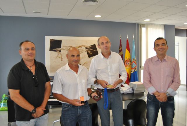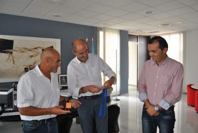El alcalde de San Javier, Juan Martínez Pastor y el concejal de Deportes, Carlos Albaladejo recibieron hoy en el Ayuntamiento de San Javier al piragüista local, José Antonio Lucas Albaladejo que a sus 56 años acaba de proclamarse Campeón del Mundo de Veteranos en K1 y K2 Marathon en los Campeonatos del Mundo celebrados en Roma, Italia.