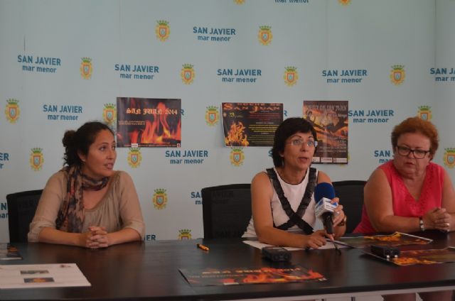 La concejala de Festejos, Gloria Cuenca, la alcaldesa pedánea de Santiago de la Ribera, Julia Gallut y la presidenta de la Asociación de Vecinos de La Manga, Marisina Aznar presentaron esta mañana las distintas celebraciones de San Juan en el municipio que en La Grajuela se adelantan a la noche del sábado 21 de junio, mientras que en el resto serán la noche del 23 de junio.