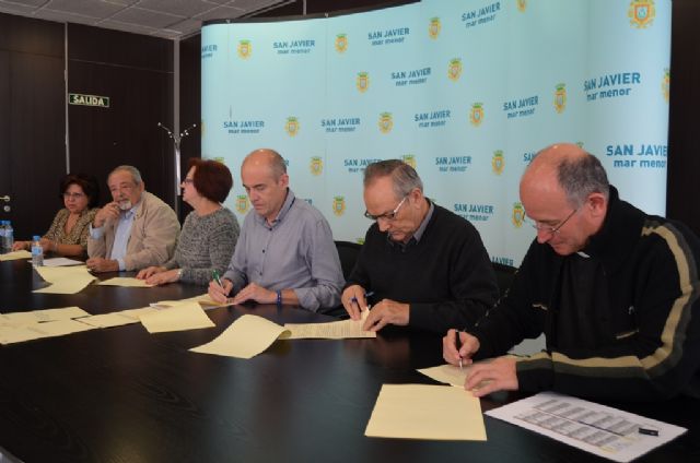 Junto a los convenios firmados hoy con Cáritas, con los párrocos José León, de San Javier, y Juan Pedro Fernández, de Santiago de la Ribera, el Alcalde firmó otros tres convenios de colaboración , uno con la Parroquia de Roda, que recibirá 12.000 euros para contribuir a la restauración de la ermita; otro con la agrupación local del Teléfono de la Esperanza, que recibirá 2.000 euros, y otro con la Rondalla y Coro Santiago Apóstol, de Santiago de la Ribera que recibirá 1.500 euros.