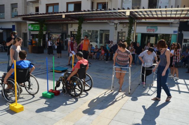 Ponerse en el lugar del otro es una manera efectiva de incidir en la concienciación social sobre las dificultades con las que se encuentra a diario una persona con algún tipo de discapacidad física para moverse por su entorno, y eso es lo que han hecho esta mañana vecinos y grupos como los llegados desde los centros de día de Aidemar y Personas Mayores.