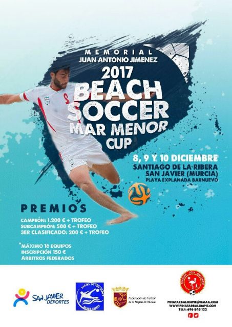 Un total de nueve equipos de la Región de Murcia, Comunidad Valenciana, Francia, Polonia y Alemania disputarán la cuarta edición del Beach Soccer Mar Menor Cup Memorial Juan Antonio Jiménez que se celebrará los días 8, 9 y 10 de diciembre en la playa Barnuevo, de Santiago de la Ribera.