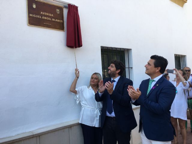 María del Mar Blanco descubrió hoy en San Javier la placa de la Avenida que lleva el nombre de su hermano, el concejal de Ermua asesinado por ETA hace 21 años, Miguel Ángel Blanco, acompañada por el presidente de la Comunidad Autónoma de la Región de Murcia, Fernando López Miras y el alcalde de San Javier José Miguel Luengo quien afirmó que se trata de "un gesto del municipio de San Javier a la memoria, dignidad y justicia hacia Miguel Ángel Blanco y hacia todas las víctimas del terrorismo".