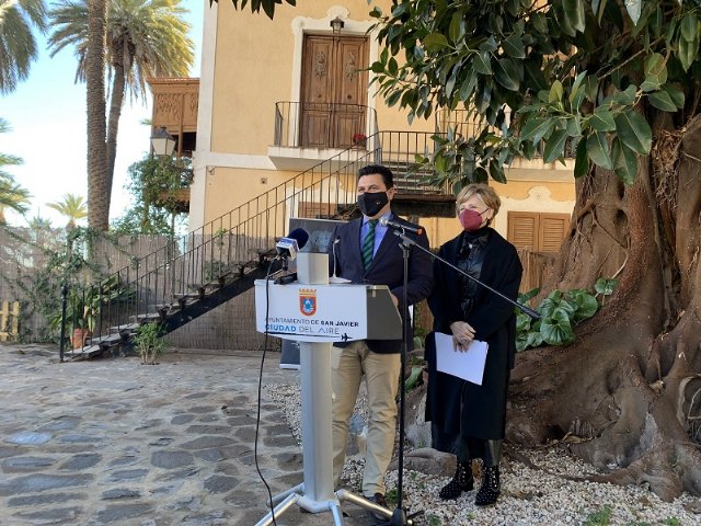 El alcalde de San Javier, José Miguel Luengo y la Decana del Colegio Oficial de Diseñadores, Rosa Sánchez presentaron esta mañana en los jardines de la Casa Barnuevo, la Muestra en la que se darán a conocer las últimas tendencias en diseño y decoración mediante la transformación de 20 espacios tanto del interior como del exterior del centenario edificio ribereño junto a un programa de actividades paralelas.
