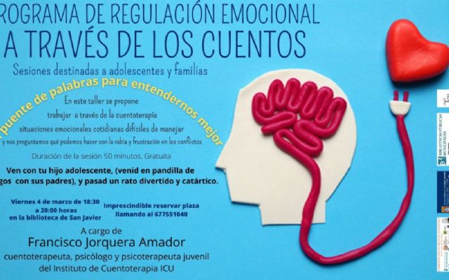 La Comisión Salud Mental y Cultura de la comarca del Mar Menor reanuda su programa de acción cultural con una sesión de Cuentoterapia dirigida al control de las emociones en adolescentes, que tendrá lugar el viernes 4 de marzo a las 18:30h en la Biblioteca de San Javier.