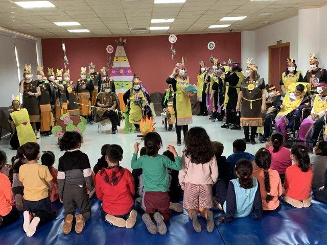 La actividad estaba basada en el cuento “El águila que camina”, de Ana A. de Eulate, la historia de un niño comanche que nace mudo pero que es capaz de llevar sus historias mágicas a las diferentes tribus nativas de norteamerica procurando la paz y la unión entre todas ellas a pesar de sus diferencias. Los usuarios discapacitados del Centro “Gregorio Ortiz” abrían la actividad con la representación teatral de la historia que promueve la valía de cualquier persona según sus capacidades y el entendimiento a través de la palabra.