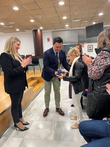 Genoveva Ortíz, fundadora y presidenta de la Asociación Parkinson Mar Menor, que en la actualidad preside de manera honorífica, ha recibido el Premio 8M que concede el Consejo de Igualdad de San Javier, “por ser un ejemplo de superación y actitud positiva ante la vida”. El alcalde de San Javier, José Miguel Luengo fue el encargado de entregar el Premio a Genoveva Ortíz, que lo recibió emocionada rodeada de familiares y amigos en un acto celebrado en el salón de plenos del Ayuntamiento de San Javier.