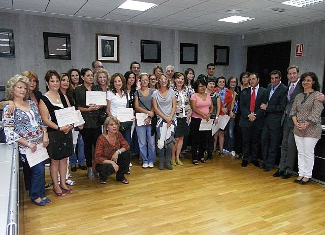 Un total de 64 alumnos de los cursos de Geriatría y Cuidados para la Dependencia nivel I y II recibieron ayer los diplomas acreditativos en un acto presidido por la alcaldesa del municipio, Visitación Martínez, el director del Instituto de Envejecimiento de la Universidad de Murcia, Vicente Vicente, la concejal de Educación, Guadalupe García, y el director de la Oficina de Cajamurcia en San Pedro del Pinatar, Pedro Villa.