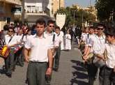 El cortejo se completó con decenas de niños, de educación infantil, primaria y secundaria, vestidos de manolas y nazarenos, que han procesionado junto a la imagen.
