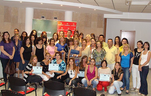 La alcaldesa de San Pedro del Pinatar, Visitación Martínez, acompañada de la concejal de Educación, Guadalupe García, y otros miembros de la Corporación Municipal han entregado hoy los diplomas a más de un centenar de alumnos que han asistido a los cursos de lecto-escritura, auxiliar de farmacia y monitor de medioambiente.
