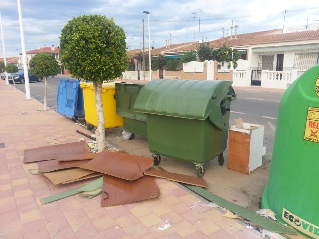 Durante esta Semana Santa se ha vuelto a repetir una pésima imagen en Lo Pagán: los contenedores de basura llenos de muebles viejos, electrodomésticos y podas. Según el concejal de UPyD, José Luis Ros: "durante esta Semana Santa el pueblo ha dado la impresión de ser un rastrillo o un Ikea de segunda mano, ya que la gran mayoría de puntos de recogida de basura de Lo Pagán han estado llenos de muebles y otros enseres que los visitantes han tirado. La responsabilidad de esta lamentable e irreparable imagen la tiene el gobierno de San Pedro del Pinatar, que no ha realizado dicha limpieza ni ha tenido la previsión de solicitarlo a la empresa de recogida de basura".