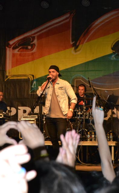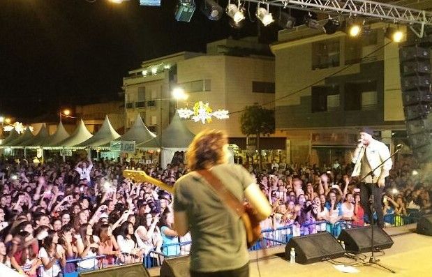 El recinto de las peñas acogió anoche el concierto del artista sevillano, conocido por temas como "Let's Damce", "Me Pones Tierno" o "Viven" ofrece un concierto gratuito en el que interpretará los temas de su último trabajo.