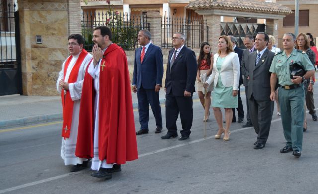 Tras la imagen del santo cerraban la procesión la junta directiva de la Hermandad y la alcaldesa del municipio, Visitación Martínez, acompañada por miembros de la Corporación Municipal y autoridades locales.