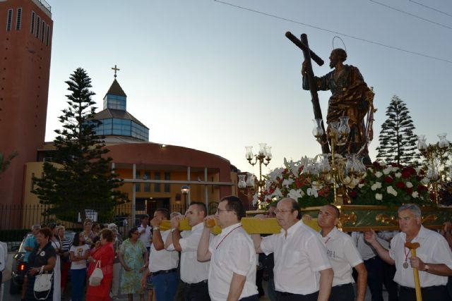 San Pedro del Pinatar celebró ayer la onomástica de su Patrón con varios actos para honrar al apóstol como la tradicional procesión por las calles del municipio.
